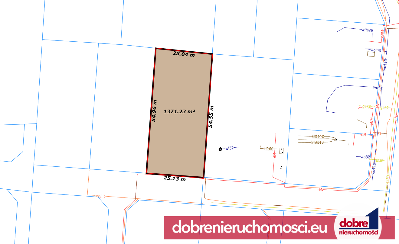 Infrastruktura: W odległości maksymalnie 50m od działki dostępne przyłącza prądu, wody i gazu,