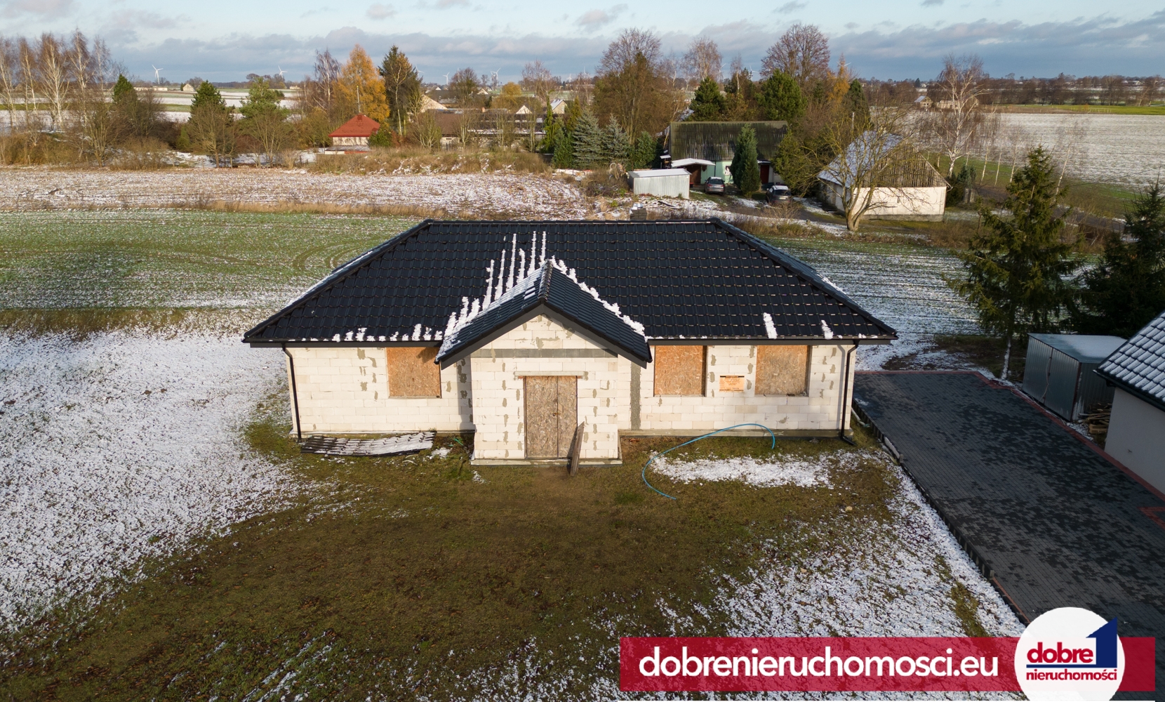 Dobre Nieruchomości polecają na sprzedaż dom w stanie surowym w miejscowości Stronno przy ulicy Wiśniowej.