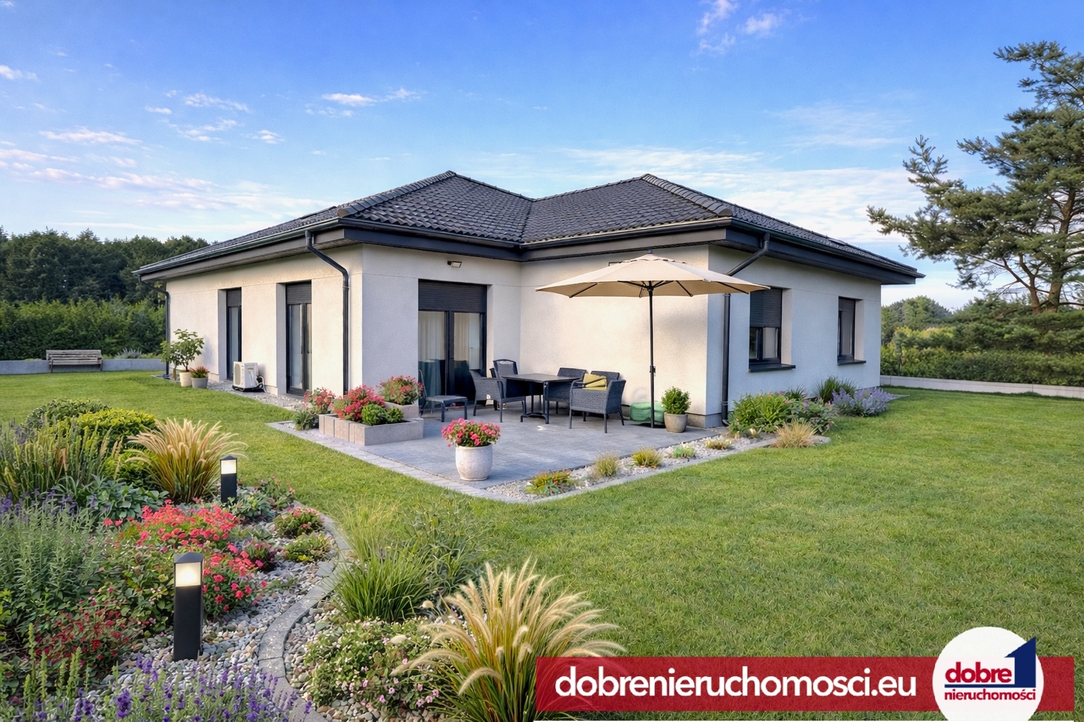Dobre Nieruchomości polecają duży, wolnostojący dom typu bungalow o powierzchni 177m2 w stanie deweloperskim plus, wraz z dużą działką o powierzchni 900m2 i 2 stanowiskowym garażem.