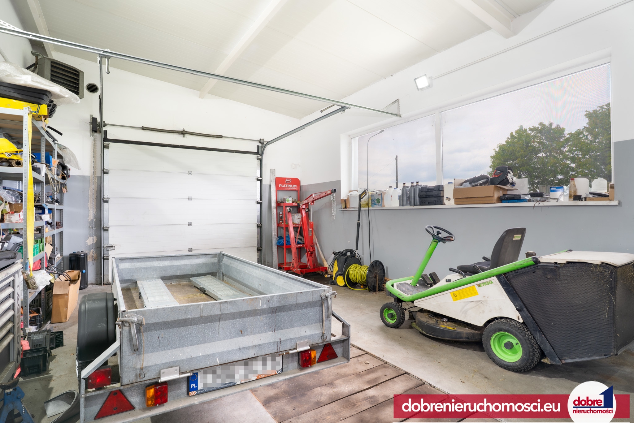 - Hala 33 m² (7 m x 4,7 m x 4 m) z bramą (2,75 m x 2 m) – dla aut dostawczych i osobowych