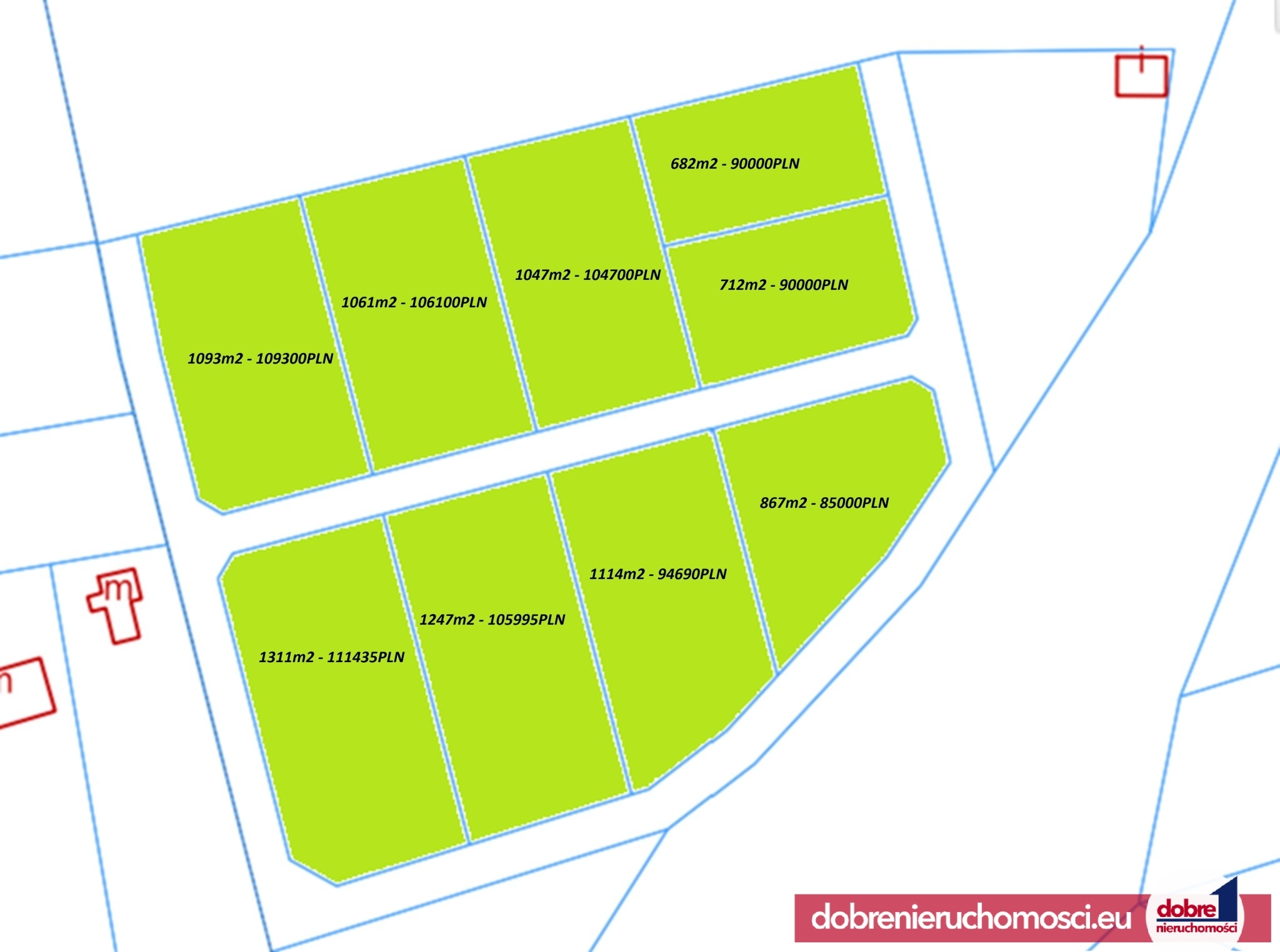 Oferujemy na sprzedaż kompleks 9 działek budowlanych