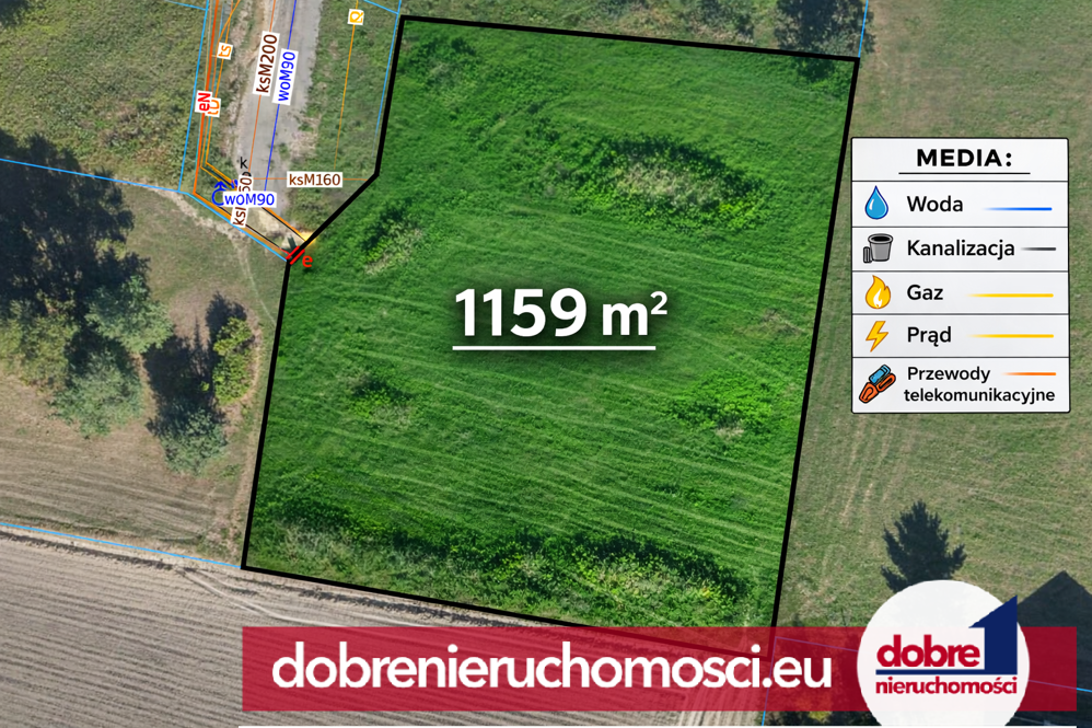 - Działka budowlana o powierzchni 1159 m²
